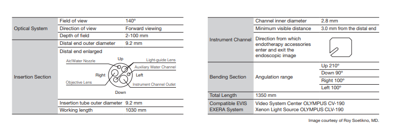 El GIF-H190 proporciona imágenes HDTV con una calidad insuperable, Narrow Band Imaging más brillante, y la inyección de agua combinado en un diseño fino delicado con el paciente.
